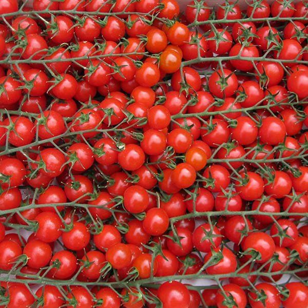 Bright red cherry tomatoes on the vine packed full of flavour and perfect for roasting or chucking in a salad.